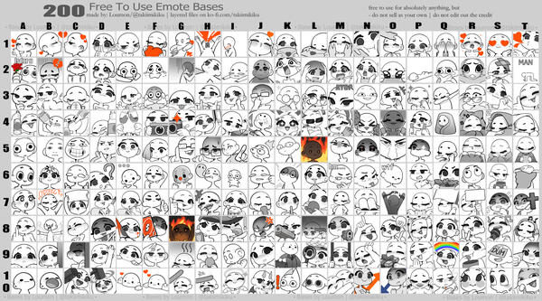 | For emotes, I use premade bases by Takiimikiku | For chibi's, I use premade bases by Miffurin |